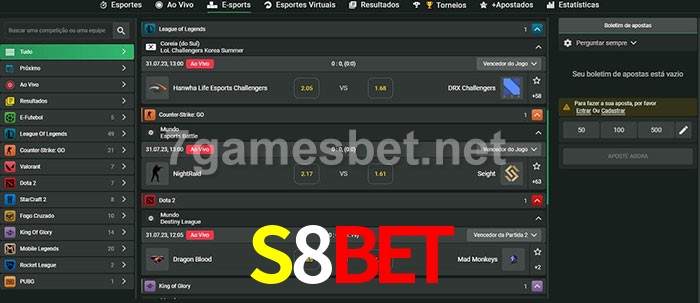 O S8BET oferece uma grande seleção de opções de apostas em e-sports com probabilidades competitivas